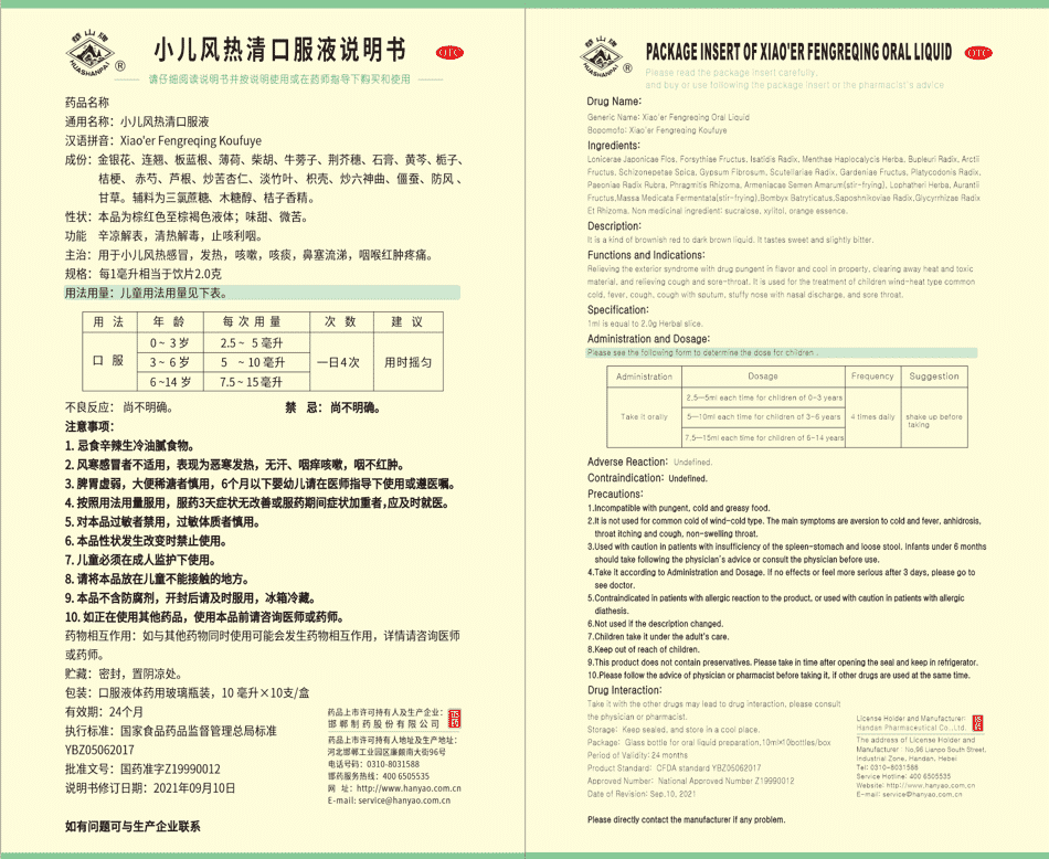 用于小兒風(fēng)熱感冒,發(fā)熱,咳嗽,咳痰,鼻塞流涕,咽喉紅腫疼痛。